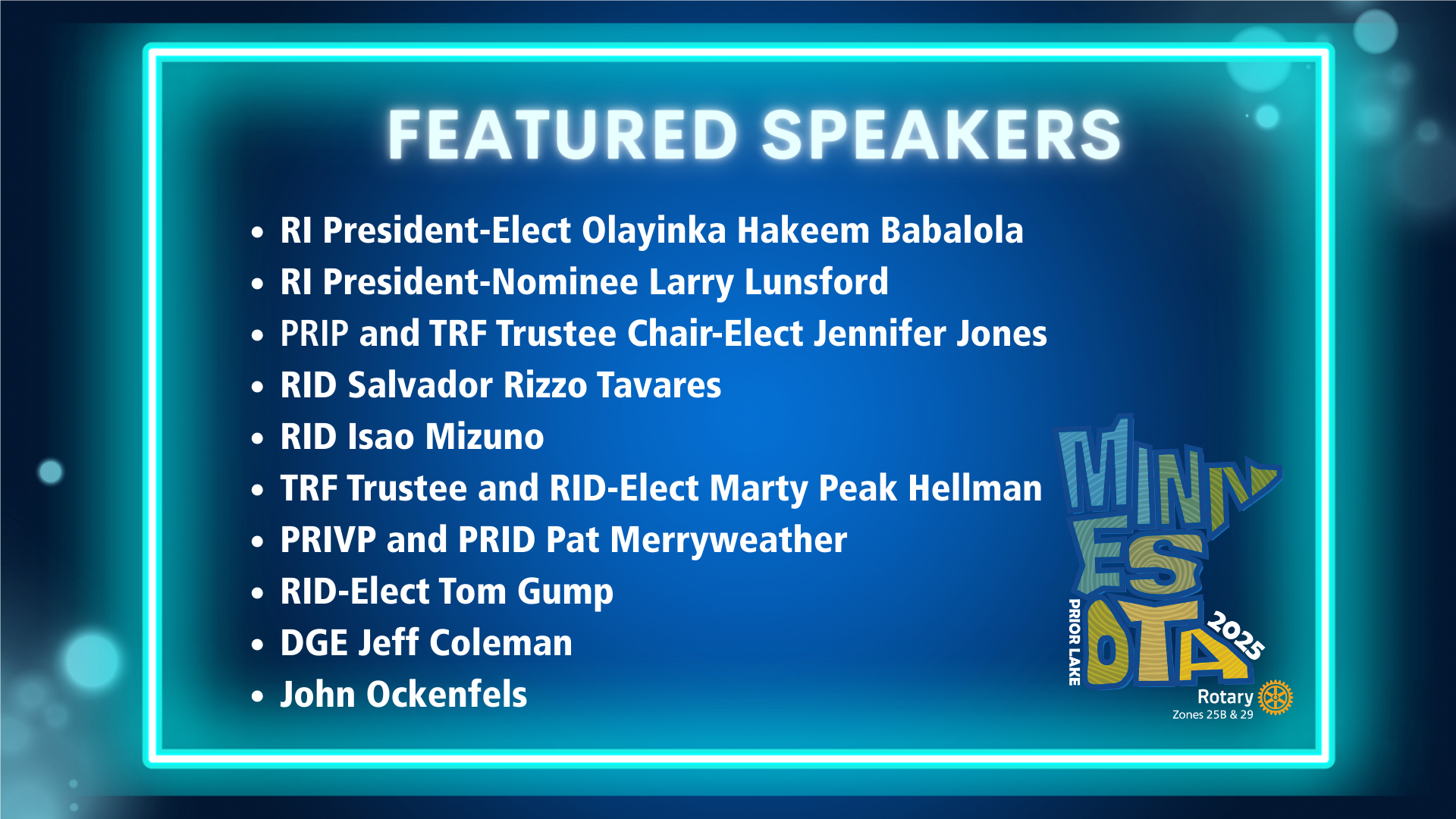 Registration is Open for Zone Institute!![]() Join us October 1–4 at Mystic Lake Center in Minnesota for the 2025 Rotary Zones 25B & 29 Zone Institute — a one-of-a-kind experience designed to help you lead with clarity, confidence, and creativity. Whether you're stepping into a new leadership role or continuing to grow your impact, this event will connect you with the tools, ideas, and people who can help you thrive. Register
